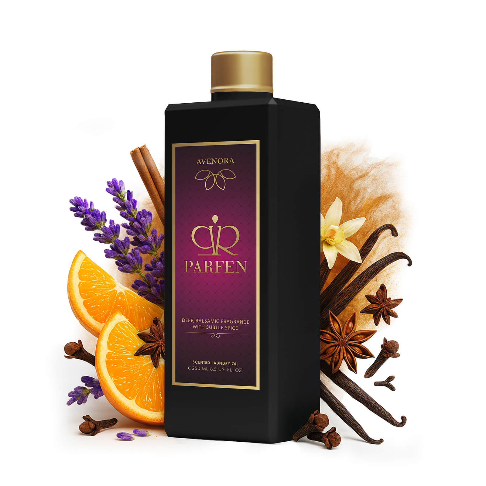 Parfum za perilo AVENORA združuje tone sočnih citrusov, čistost sivke in orientalski pridih začimb. Po pranju pusti na oblačilih sveže-orientalski vonj. Ko perilo vzamete iz pralnega stroja, boste zaznali zelo intenziven in edinstven vonj. Postopoma se aroma zmehča in na oblačilih ostane dolgotrajna, sveže-žametna aroma, ki jo boste čutili še tedne po pranju.