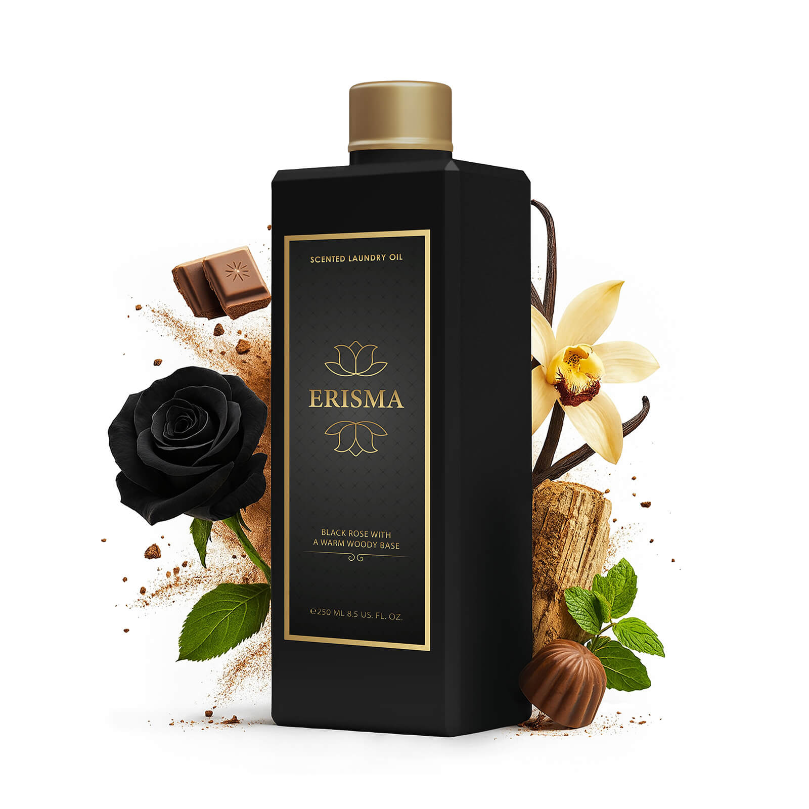 Parfum za perilo ERISMA doda vašemu sveže opranemu perilu kanček skrivnostnosti. Po pranju na oblačilih pusti intenziven, topel cvetno-lesni vonj, ki spominja na eksotične vrtove, polne vrtnic in dragocenih začimb. Ko oblačila po nekaj časa vzamete iz omare, se vonj zmehča. Vaša oblačila bodo prijetno dišala po sladki vaniliji.