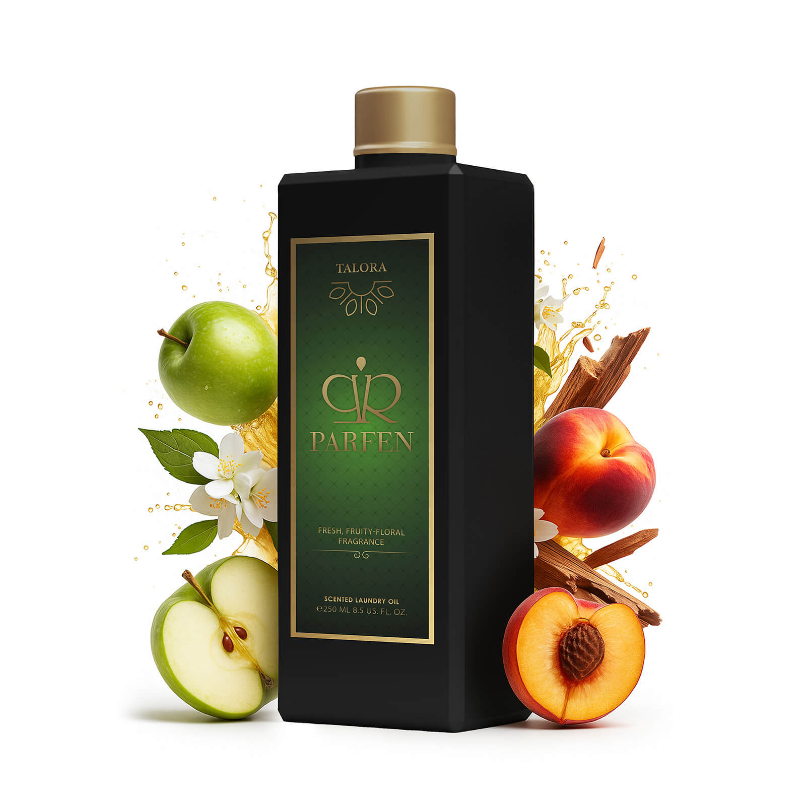 Iščete alternativo klasičnemu mehčalcu? Če želite sveže perilo z daškom sočnega sadja, je parfum za perilo TALORA prava izbira za vas. Vsebuje sočne tone breskve in jabolka, ki v kombinaciji z ostalimi sestavinami ustvarjajo občutek sprehoda skozi cvetoč sadovnjak, poln pozitivne energije.
