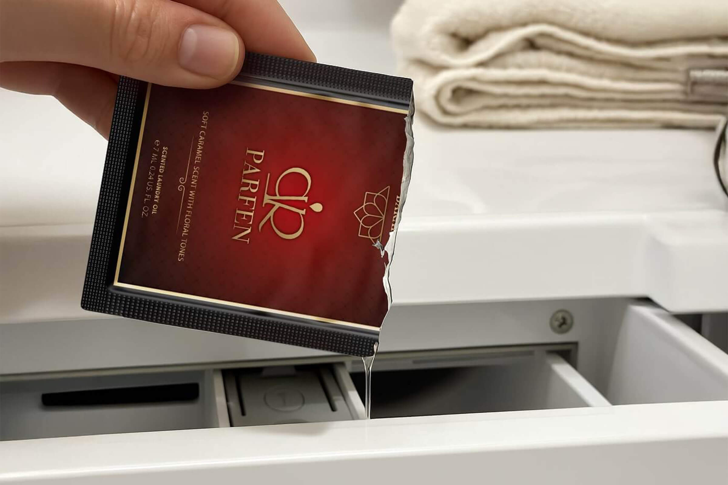 Pranje še nikoli ni bilo lažje – parfumi so primerni za vse vrste pralnih strojev. Dovolj je dodati majhno količino v predal za mehčalec, in vaše perilo bo popolnoma odišavljeno.
